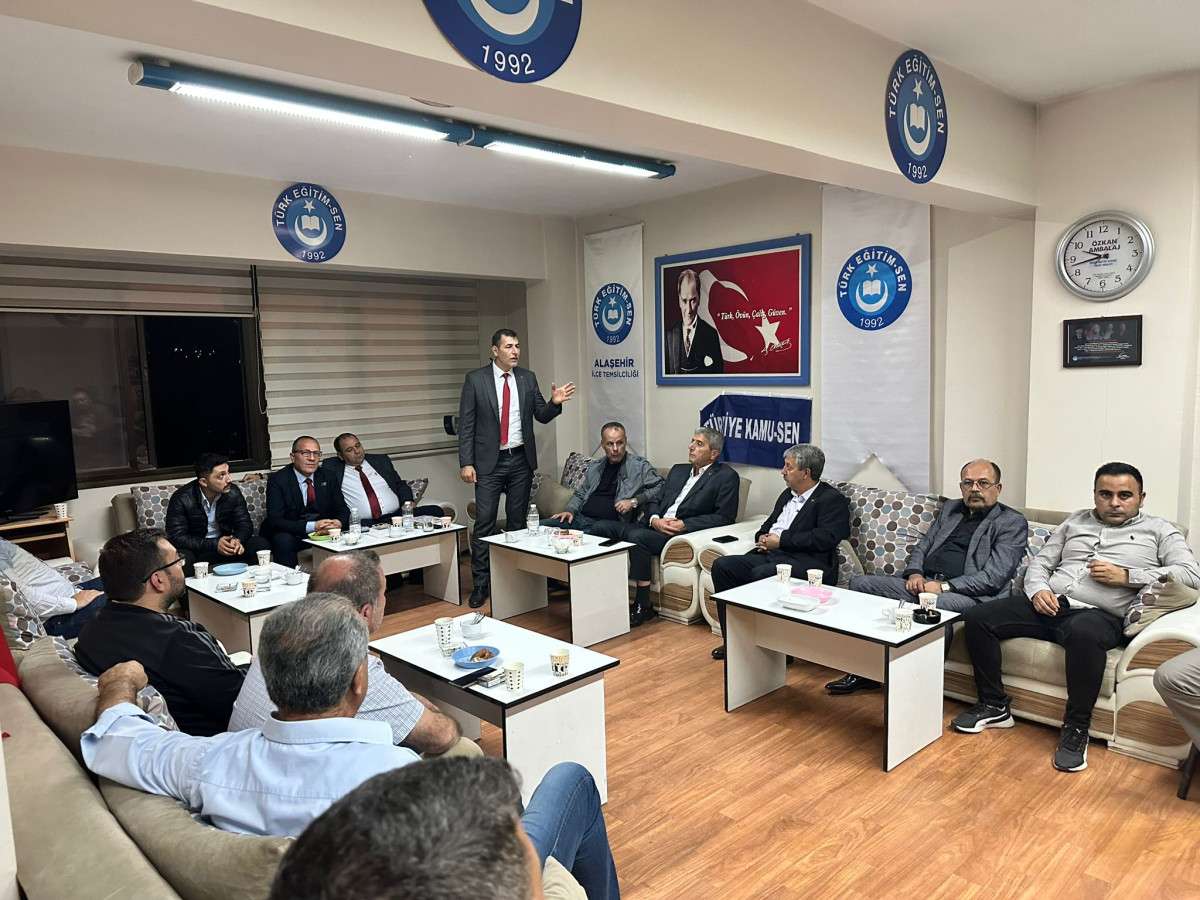 Türkiye Kamu-Sen'e bağlı sendika başkanları ve Alaşehir iş yeri temsilcileri Manisa Türkiye Kamu-Sen İl temsilci Aydın Akagündüz başkanlığında Alaşehir'de toplandı. Toplantıya Manisa Türkiye Kamu-Sen İl temsilci ve Türk Sağlık Sen Manisa şube başkanı Aydın Akagündüz, Türk Eğitim Sen Manisa şube başkanı Koray Özgüler, Türk Büro Sen Manisa 1 nolu şube başkanı Ahmet Ağır, Türk Büro Sen 2 Nolu şube başkanı Samet Atmaca, Türk Tarım Orman Sen Manisa şube başkanı Ali Tekin, Türk Haber Sen Manisa il başkanı Serkan Bezciler, Türk Eğitim Sen Manisa şube başkan yardımcısı Ertan Tonel, Türk Tarım Orman Sen Manisa şube başkan yardımcısı Halil Kılıç, Türkiye Kamu-Sen Manisa İl Temsilciliğine sendika başkanları ve iş yeri temsilcileri katıldı.