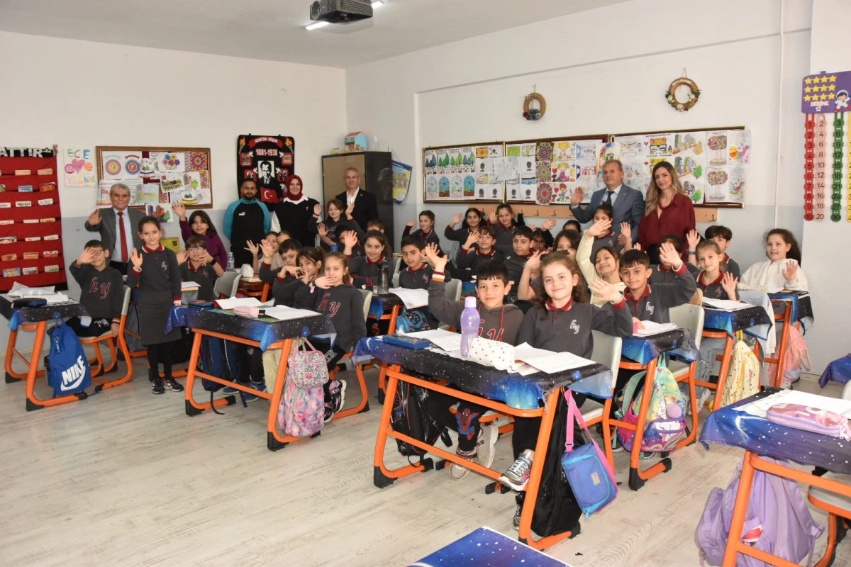 Manisa’nın Yunusemre ilçesindeki Halil Yurtseven İlkokulunda güzel anlar yaşandı. Başkanlık seçiminde arkadaşlarına “Başkan seçilirsem sınıfımıza İlçe Milli Eğitim Müdürümüzü getireceğim” vaadinde bulunan 3-C sınıfı öğrencisi Defne Yüceel’in çağrısına Yunusemre Milli Eğitim Müdürü Yıldıray Demirtaş kayıtsız kalmayarak isteğini yerine getirdi. Minik öğrencileri ziyaret eden Milli Eğitim Müdürü Yıldıray Demirtaş öğrencilerin sevincine de ortak oldu. Çocuklar İlçe Milli Eğitim Müdürü’nün sınıfa gelerek söz hakkı vermesinden dolayı şiirler okudu. Okul Müdürü Reşat Akyüz ise okulda kurulan spor kulübüyle ilgili Yıldıray Demirtaş’ın isminin yazılı olduğu 45 numaralı formayı hediye etti.